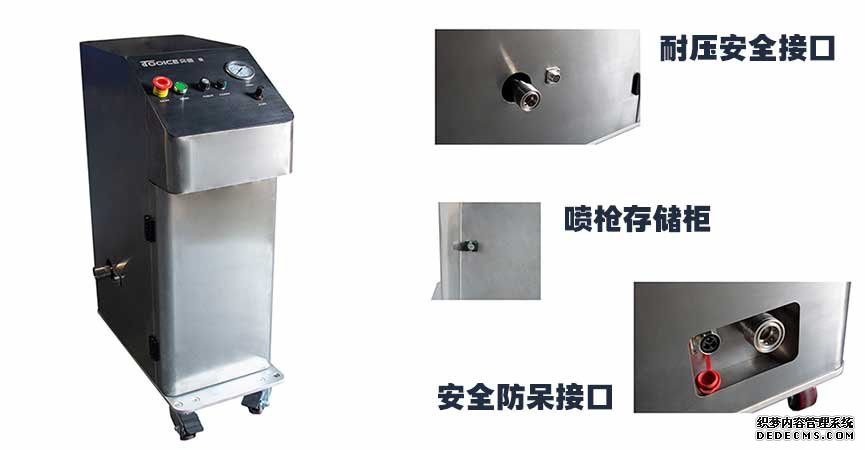 另外還有一種解決方案是采用塊狀干冰進(jìn)行二次研磨,這種機(jī)型雖然可以解決以上問題,但由于   結(jié)構(gòu)限制清洗作業(yè)僅適應(yīng)小型零件小面積的作業(yè)場(chǎng)景,且需要有專門規(guī)格的干冰磚塊供應(yīng)。